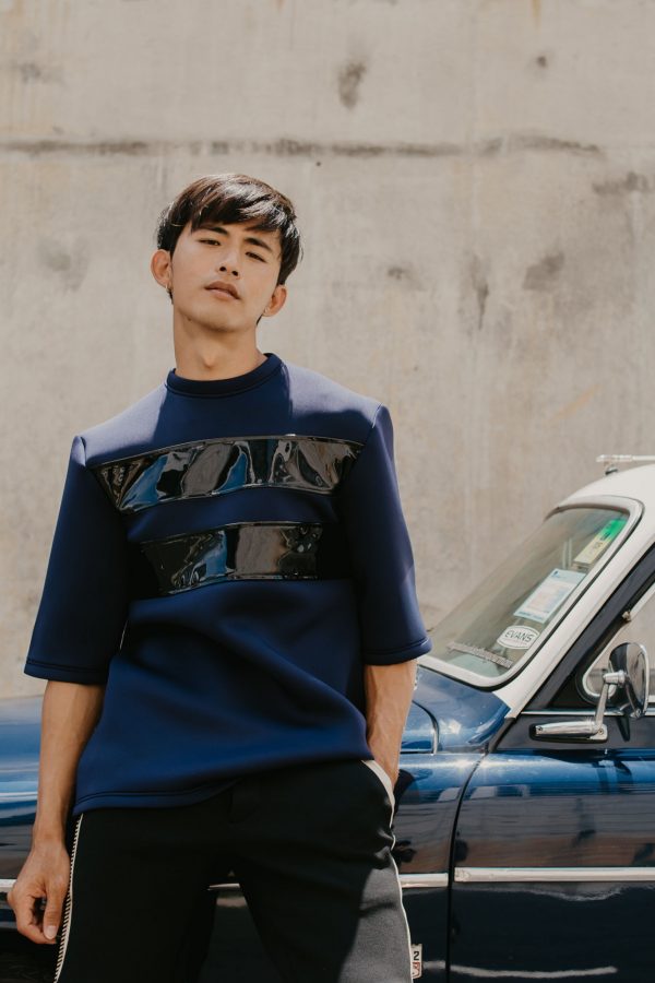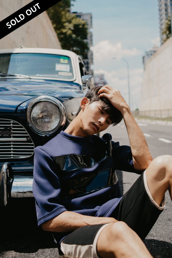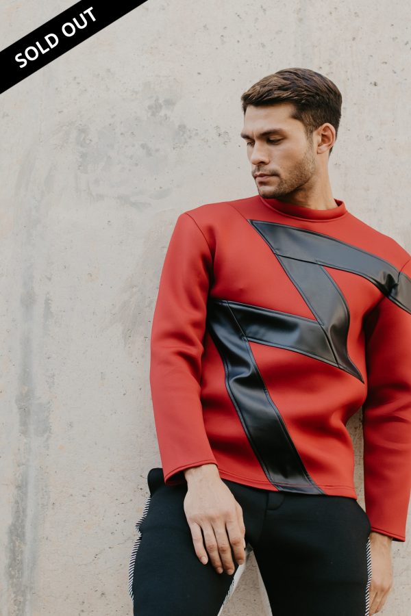 Black Leather Cross-Over Stripe Jumper (Midnight Blue)