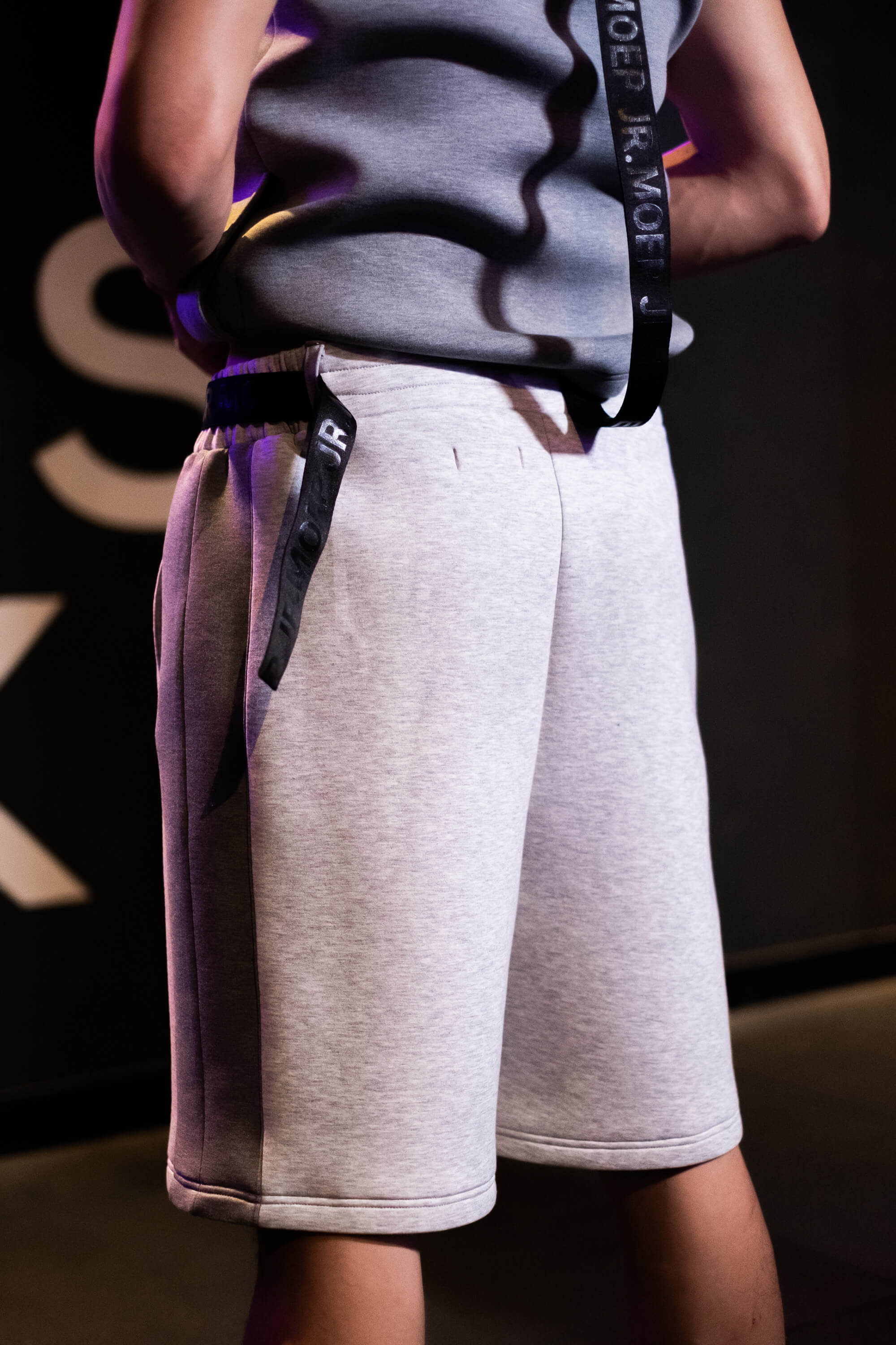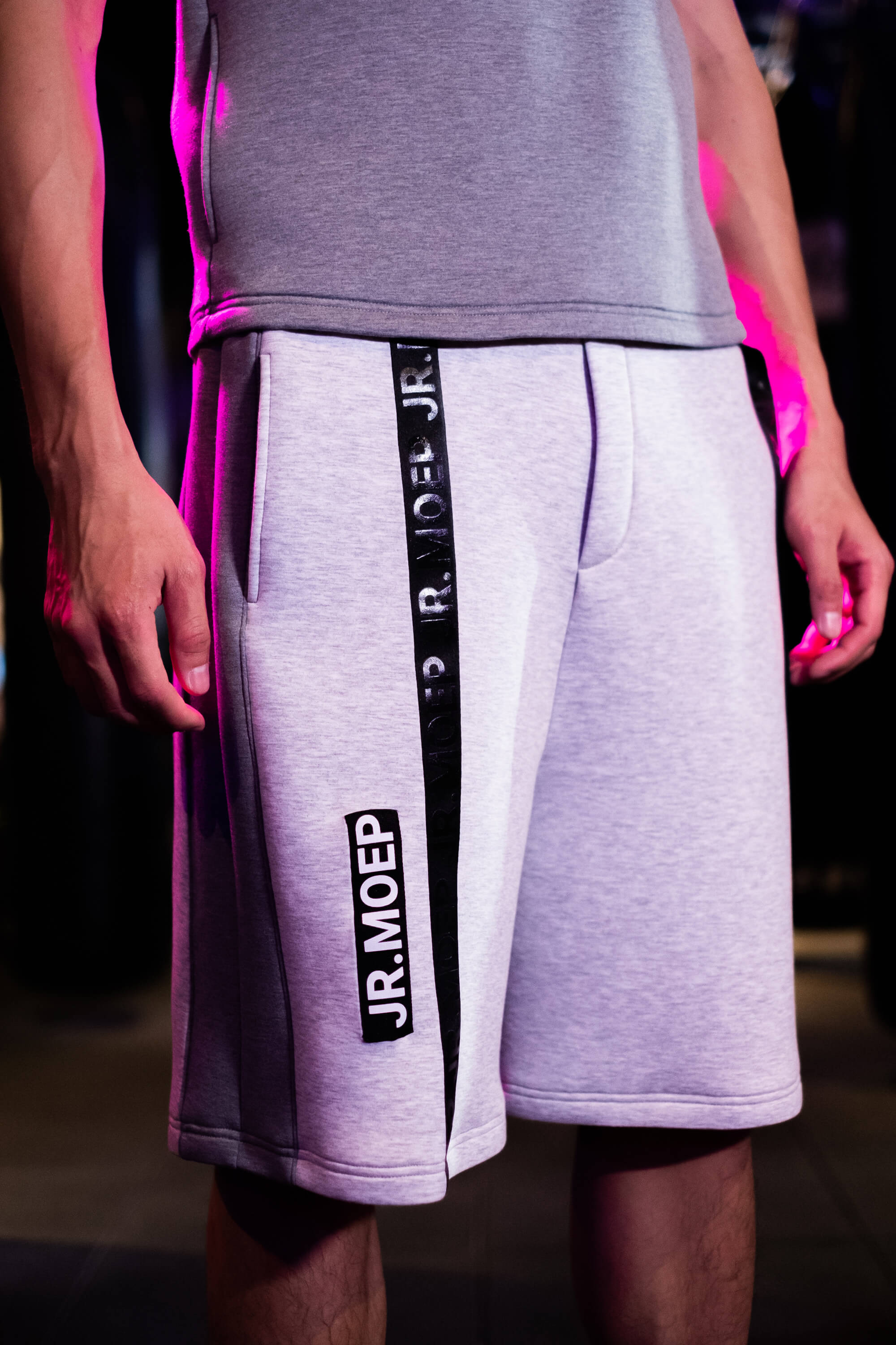 With our comfortable elasticated waistband and two side seam spacious pockets to secure your goods, equipped with a long JR. MOEP matte black strap on the waistline can spice up your carefree style and add some diversity. With these JR.MOEP short pants are perfect addition to the wardrobe.