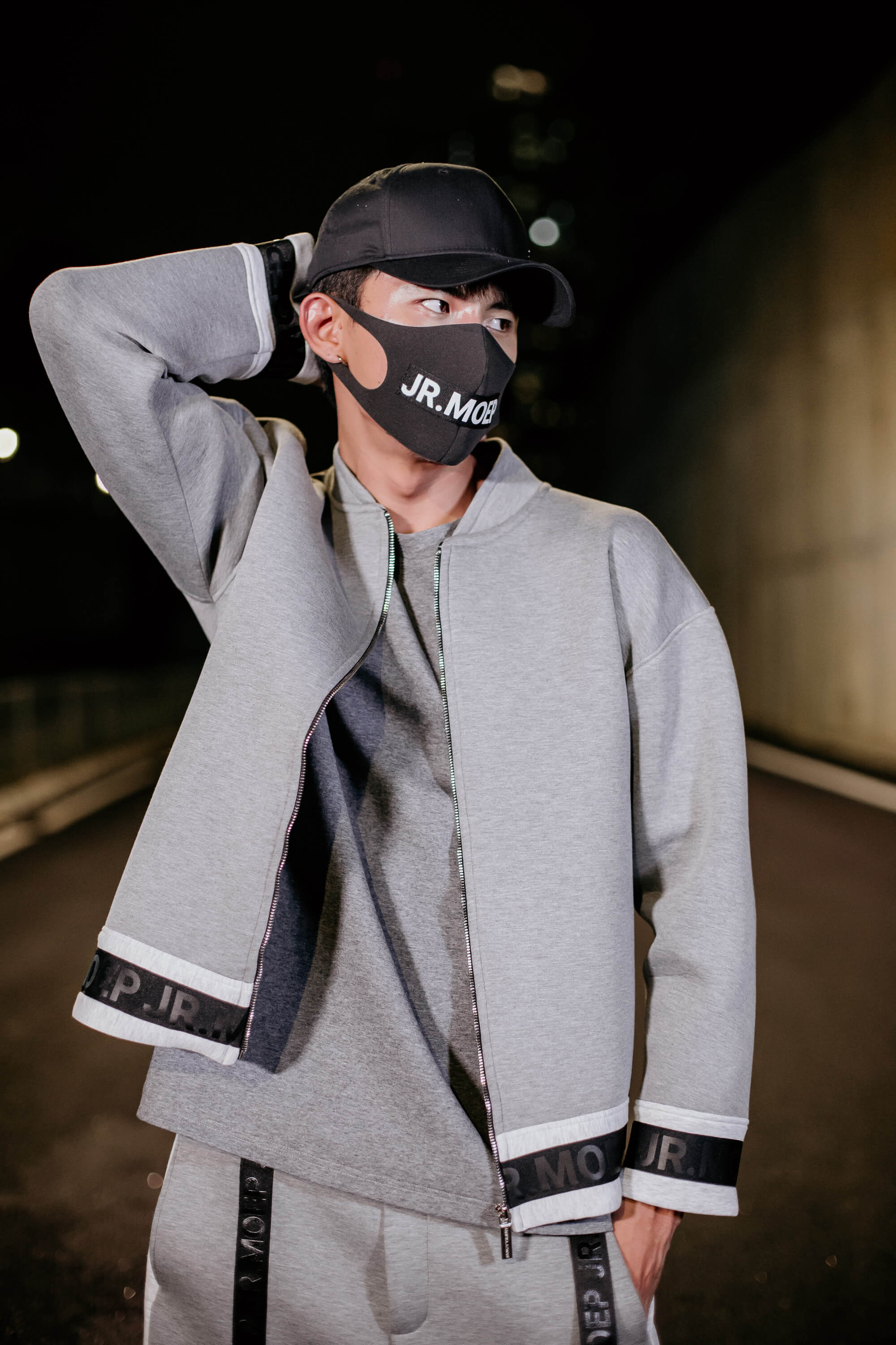 Inspired by varsity jacket as representing your sporting prowess and allegiances, this baseball jacket is equipped with front zip closure and contrast paneling JR. MOEP matte black strap on the hem of body and sleeve.