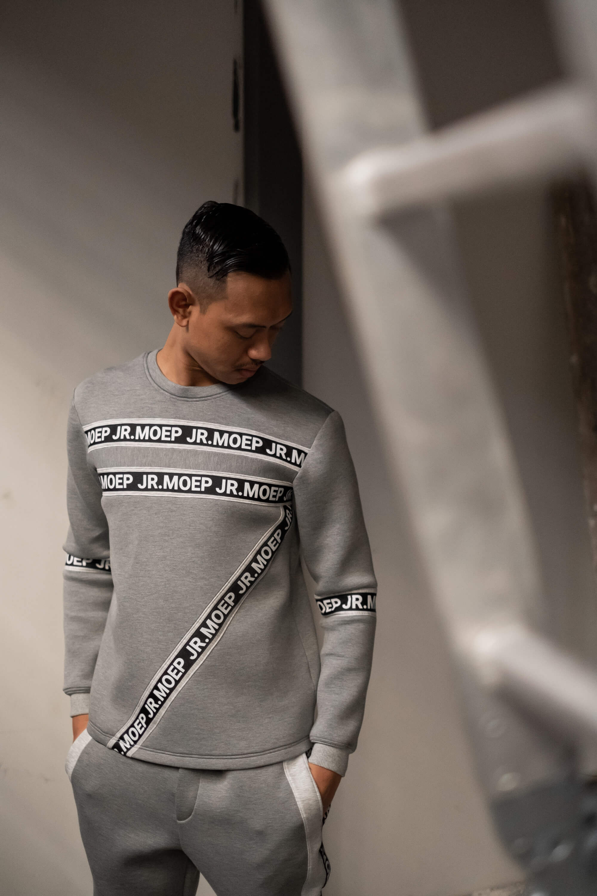 A simple and comfortable jumper set that is created with the inspiration of Number ‘7’. Concept of minimalism, architecture and futuristic elements. This piece is created with the use of Grey neoprene and Black JRMOEP label strap to enhance that edgy can be minimalistic and comfortable at the same time. This piece is well suited for an effortless casual date to a semi-formal events, sportswear and daily activities.
